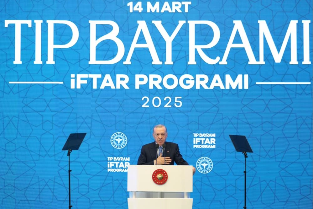 Cumhurbaşkanı Recep Tayyip Erdoğan, 14 Mart Tıp Bayramı kapsamında İstanbul Başakşehir Çam ve Sakura Şehir Hastanesinde sağlık çalışanları için düzenlenen iftar programına katıldı. İftar sonrasında sağlık çalışanlarının tıp bayramını kutlayarak konuşmasına başlayan Cumhurbaşkanı Erdoğan, "Ülkemizin 81 vilayetinde milletimize hizmet eden toplam sayısı 1,5 milyona ulaşan sağlık çalışanlarıma şükranlarımı sunuyorum. Hekimlerle beraber tüm sağlık çalışanlarının Tıp Bayramı'nı kutluyorum. Tıbbiyeliler İstikbal harbimizde hem cephe önünde hem cephe arkasında canlarını tehlikeye atmışlardı" diye konuştu. "Salgında en önde siz vardınız" Sağlık çalışanlarının zor zamanlardaki emeklerinin unutulmaz olduğunu vurgulayan Cumhurbaşkanı Erdoğan, "Hocasından doktoruna, sağlık çalışanlarının tüm neferlerine hem pandemide hem de 6 Şubat depremlerinde verdikleri mücadeleleri gördük. Siz kardeşlerimizin çabalarını, emeklerini asla ve asla unutmayız. Rabbim sizden ve tüm sağlık camiamızdan razı olsun diyorum. Sizlere ülkem ve milletim adına bir kez daha teşekkür ediyorum. Zor günlerde gösterdiğiniz emeğin milletimiz tarafından her zaman takdir edileceğini sizlere belirtmek isterim. Salgınla mücadeleyi, Amerika ve Avrupası dahil bizden daha iyi imkanlara sahip ülkelerden daha iyi yönetmemizde şu an olduğumuz Başakşehir Çam ve Sakura hastanesinin de etkisi olmuştur. Ülkemizdeki muhalefetin engellemek için her yolu denediği bu hastaneler binlerce insanımızın hayatının kurtulmasına vesile olmuştur. Her ne kadar salgını atlatmış olsak da olumsuz sonuçlarını yaşamaya devam ediyoruz. Salgından sonra toplumun sağlık ihtiyaçlarında artış yaşandı. Son iki yıldır sağlık hizmetimizde ilave yük oluşturan bu sistemin çözülmesi için farklı adımlar atıyoruz" dedi. "25 şehir hastanesi hizmete başladı, 11 yeni şehir hastanesinin yapımı sürüyor" Şehir hastanelerinin yapımına devam ettiklerini belirten Cumhurbaşkanı Erdoğan, "Hekimlerimizin de çabalarımızı sahiplenmesiyle birlikte insanımızın doğru yerde doğru şekilde etkin tedaviye ulaşmasını sağlayarak inşallah hasta sayısını düşüreceğiz. Hastane, poliklinik ve sağlık ocağı sayılarının artmasında, şehir hastaneleri gibi özgün projelerin sağlık alanına kazandırılması kadar geniş bir yelpazede çok iş yaptık. İlk defa dönemimizde uygulamaya aldığımız evde sağlık hizmetleriyle bugün 2 milyon 753 bin insanımızın ayağına sağlık hizmetini götürüyoruz. 25 şehir hastanemiz hizmete girdi. Toplamda 37 bin 367 yataklı 25 şehir hastanemiz hizmete girdi, toplam 13 bin 950 yataklı 11 şehir hastanesinin yapımı sürüyor. Hepsi tamamlandığında toplam 57 bin yatış kapasitesiyle 45 şehir hastanemiz olacak. Sağlıkta yaptığımız devrimleri tek tek anlatmaya kalksak değil iftarı sahuru da burada yaparız" ifadelerini kullandı. "Sağlıkta şiddete asla müsamahamız yoktur" 2025 yılı içinde 37 bin hekim dışı personelin istihdam edileceğinin müjdesini veren Erdoğan, sağlık çalışanlarına yönelik şiddete sıfır tolerans gösterdiklerini vurgulayarak, "Değişen ihtiyaçlara ve beklentilere ihtiyaç vermek adına inşallah önümüzdeki süreçte kamunun sağlık alanında güçlendiği, sağlık sunumunun kalitesinin arttığı, gereksiz ilaç kullanımının önlenmesi, aşırı kilo ve teknolojik bağımlılık gibi şeylerin yanı sıra tütün mamullerine olan ilgiliyi azaltmayı hedefliyoruz. Sağlık çalışanlarında şiddet konusunda zaten en üstte olan hassasiyetimizin değişmediğini söylüyorum. Her alanda olduğu gibi sağlıkta da şiddete asla müsamahamız yoktur. Bu konuda ilkemiz sıfır toleranstır. İnşallah 2025 senesi içinde sağlık teşkilatımızı istihdam edeceğimiz 37 bin hekim dışı personel ile daha da güçlendireceğiz" ifadelerini kullandı.