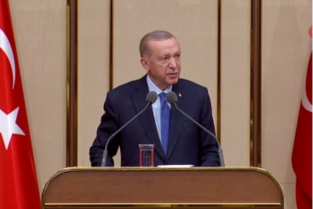 Türkiye’nin son 2 asrının bir kavgayla, kayıpla, arayışla ve bedel ödemeyle geçtiğini söyleyen Erdoğan, “Ülkemizin, vatanımızın, mensubu olduğumuz milletin kıymetini çok iyi bilmeliyiz. Bu değerlerle bağları kalmayan bir fert tıpkı ağaçtan kopan bir yaprak gibi esen rüzgarın önünde savrulmaya ve nihayetinde yok olup gitmeye mahkumdur. Milletimizi başka türlü alt edemeyeceğini görenlerin uzunca bir süredir değerlerimize saldırması bu yüzdendir. Cumhuriyetimizin ilk asrını geride bırakmaya hazırlandığımız şu dönemde bu kirli senaryonun yine sahnelenmeye çalışıldığını görüyoruz. Açık konuşmak gerekirse Türkiye’nin son iki asrı bu doğrultuda sürekli bir kavgayla, kayıpla, arayışla ve bedel ödemeyle geçmiştir. Çanakkale’den milli mücadeleye kadar her cephede vatanını namusunu kurtarmak için canını dişine takarak mücadele eden milletimiz bedellerin en büyüğünü ödemiştir. Bir yandan her biri ciğerimizden bir parça olan vatan topraklarının bir kısmının elimizden kayıp gitmesinin diğer yandan işgal ve zulümden kaçan milyonların Anadolu’ya yığılmasının sancılarını yaşadık. Tabii bugün olduğu gibi o devrin mandacıları da boş durmuyordu. Kendi aralarında ülkeyi emperyalist güçlerden hangisine peşkeş çekeceklerinin kavgasını yapan mandacılara rağmen milli mücadele zafere ulaşmıştır. Cumhuriyet tarihi boyunca da milli mücadelemizi farklı görünüm ve söylemlerle milletimizin birliğine, vatanımızın bütünlüğüne, istiklalimizin sembolü bayrağımıza, şehadetleri dinin temeli ezanımıza saldıran alçaklara karşı hep sürdürdük ve sürdüreceğiz” ifadelerini kullandı.