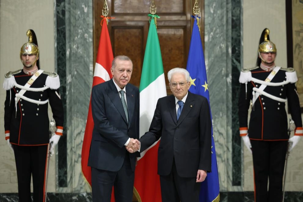 Cumhurbaşkanı Recep Tayyip Erdoğan, resmi bir ziyaret çerçevesinde bulunduğu İtalya’da temaslarına devam ediyor. Cumhurbaşkanı Erdoğan, başkent Roma’daki Quirinal Sarayı’nda İtalya Cumhurbaşkanı Sergio Mattarella ile bir araya geldi. Görüşmede, Türkiye ile İtalya ikili ilişkileri, bölgesel ve küresel konular ele alındı. Cumhurbaşkanı Erdoğan görüşmede, Türkiye ve İtalya’nın ikili ilişkilerini geliştirmekte ve iki ülkenin iş birliğini ileriye taşımakta kararlı olduğunu, bu anlayışla 40 milyar dolar ticaret hacmi hedefine de ulaşılacağını ifade etti. Cumhurbaşkanı Erdoğan, Türkiye’nin Ukrayna-Rusya Savaşı, İsrail’in Filistin topraklarındaki saldırıları başta olmak üzere, bölgedeki tüm çatışmaların sonlandırılması için gayret gösterdiğini, bu bölgelerde öncelikle kalıcı ateşkese, ardından kalıcı barışa ulaşmak için elinden geleni yapmaya devam edeceğini belirtti. Erdoğan, görüşmenin ardından İtalya-Türkiye İş Forumu’nun gerçekleştirileceği Parco dei Principi Oteli'ne hareket etti. Erdoğan’ın burada İtalya Başbakanı Giorgia Meloni ile birlikte İtalya ve Türkiye’den yaklaşık 620 şirketin temsilcilerine hitap etmesi bekleniyor.