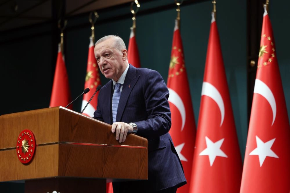 Dış politikada oldukça yoğun ve karmaşık bir gündemle karşı karşıya olunduğunu ifade eden Cumhurbaşkanı Erdoğan, İsrail’in Gazze’ye 7 Ekim 2023’te başlattığı saldırıların Lübnan’ı, Suriye’yi ve diğer bölge ülkelerini de içine alacak şekilde genişlediğine dikkat çekti. Erdoğan, "Birileri ısrarla görmezden gelse de, Türkiye’nin hemen yanı başında son derece kanlı, son derece tehlikeli bir savaş tam 14 aydır devam ediyor. Türkiye olarak, İsrail hükümetinin saldırgan politikasına ilk günden itibaren en güçlü tepkiyi veren ülkelerden biriyiz. Katıldığımız her uluslararası toplantıda, Gazze’de yaşanan vahşete dikkat çekiyoruz. Gazze’ye gönderilen insani yardımlar noktasında da 86 bin tona ulaşan yardım miktarıyla ilk sırada yer alıyoruz. İsrail’le ticareti tamamen keserek, yaklaşık 9,5 milyar dolarlık bir ticaret hacminden sarfı nazar ettik. Uluslararası Adalet Divanı’nda İsrail aleyhine açılan soykırım davasına müdahil olma başvurumuzu geçtiğimiz aylarda yaptık. Birleşmiş Milletler başta olmak üzere tüm uluslararası örgütlerde İsrail’i çatışmaları durdurmaya zorlayacak tedbirler alınması için uğraşıyoruz. İslam dünyasının İsrail hükümetine karşı tek yürek, tek bilek olması için yoğun gayret gösteriyoruz” açıklamasını yaptı.