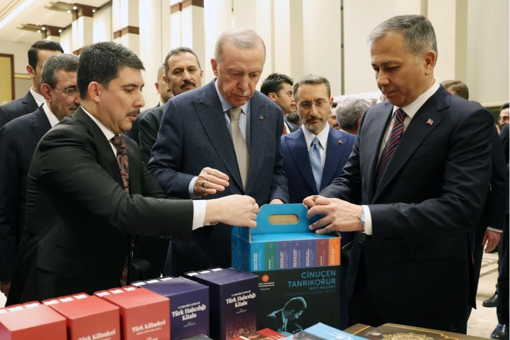 Cumhurbaşkanı Erdoğan, Cumhurbaşkanlığı Külliyesi’nde Ramazan etkinlikleri kapsamında düzenlenen kitap fuarını ziyaret etti. Cumhurbaşkanı Erdoğan’a ziyaretinde, Cumhurbaşkanı Yardımcısı Cevdet Yılmaz, İçişleri Bakanı Ali Yerlikaya, Cumhurbaşkanlığı İletişim Başkanı Fahrettin Altun, Cumhurbaşkanlığı Özel Kalem Müdürü Hasan Doğan ve İçişleri Bakan Yardımcısı Bülent Turan eşlik etti.