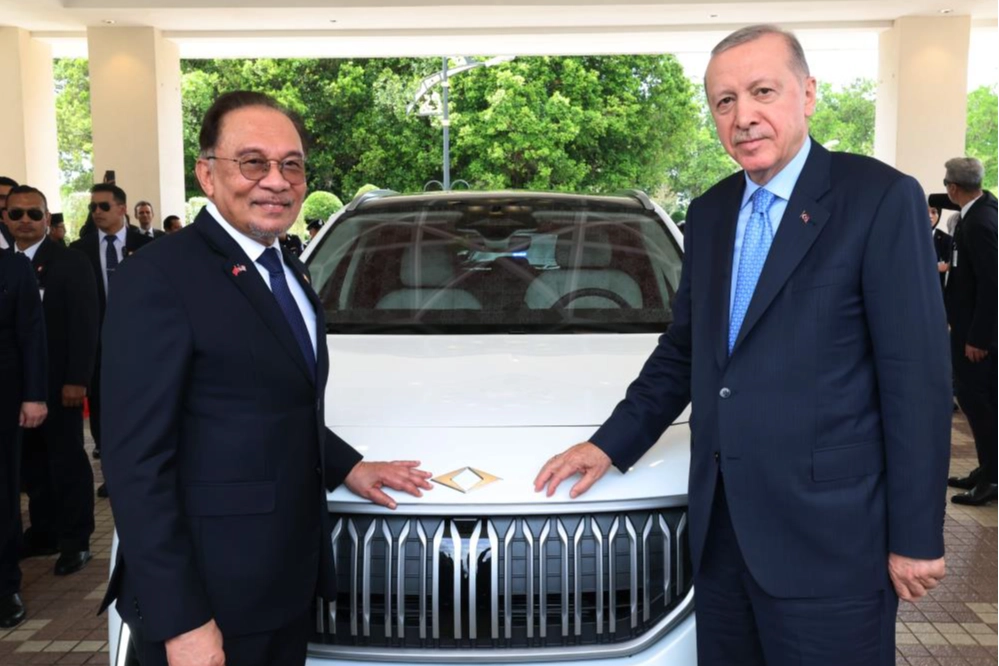 Cumhurbaşkanı Recep Tayyip Erdoğan, resmi ziyaret düzenlediği Malezya’da temaslarını sürdürüyor. Cumhurbaşkanı Erdoğan Malezya Başbakanı Enver İbrahim’e TOGG aracı teslim etti. aracın teslim töreninde Malezya’ya özgü halk dansları gösterisi yapılırken Malezya ve Türkiye bayrakları taşıyan Malezyalı çocuklar Cumhurbaşkanı Erdoğan’a büyük ilgi gösterdi. Cumhurbaşkanı Erdoğan ve Malezya Başbakanı İbrahim, çocuklarla hatıra fotoğrafı çektirdi.