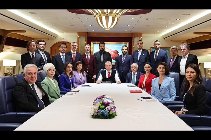 Cumhurbaşkanı Recep Tayyip Erdoğan Birleşmiş Milletler (BM) İklim Değişikliği Çerçeve Sözleşmesi 28'inci Taraflar Konferansı kapsamında Expo City Dubai'de düzenlenen Dünya İklim Eylemi Zirvesi'ne katıldıktan sonra Türkiye'ye dönüşünde uçakta gazetecilere değerlendirmelerde bulundu, soruları yanıtladı.