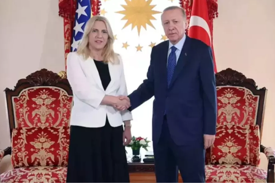 Cumhurbaşkanı Recep Tayyip Erdoğan, Bosna Hersek Devlet Başkanlığı Konseyi Başkanı Jelka Sviyanoviç ile Dolmabahçe’deki Cumhurbaşkanlığı ofisinde bir araya geldi. Toplantı basına kapalı olarak gerçekleştirildi.