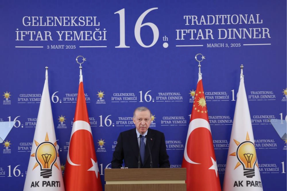 Filistin halkının bu Ramazan ayını da maalesef acıyla, hüzünle, Gazze'de kaybettikleri 61 binden fazla canının üzüntüsüyle karşıladıklarını söyleyen Erdoğan, "Geçici ateşkesle yeşeren umutların İsrail'in hukuk tanımaz ve şımarık tavırlarıyla tekrar solmaya başladığını görüyoruz. Netanyahu hükümeti zaten kırılgan olan ateşkes anlaşmasını istismar etmek için her yola başvuruyor. İsrailli bakanların Batı Şeria’yı ilhak çağrıları yetmezmiş gibi bir de Mescid-i Aksa'yı hedef alan kışkırtmalarıyla İsrailli yetkililer ateşle oynamaktadır. İlk kıblemiz Mescid-i Aksa'nın kırmızı çizgimiz olduğunu bugün bir kere daha muhataplarına önemle hatırlatmak istiyorum. Gazzeli kardeşlerimizi doğdukları, büyüdükleri ve uğruna hayatlarını feda ettikleri topraklarından söküp atmaya kimsenin gücü yetmeyecektir. Gazzelilerin öz yurtlarında barış ve huzur içinde yaşamaları için elimizdeki tüm imkanları seferber etmiş durumdayız" şeklinde konuştu.