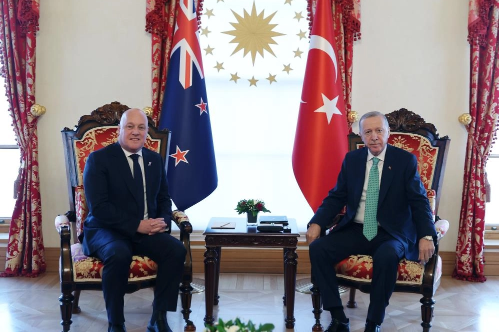 Cumhurbaşkanı Recep Tayyip Erdoğan, Yeni Zelanda Başbakanı Christopher Luxon’u İstanbul’da kabul etti. Beşiktaş Cumhurbaşkanlığı Dolmabahçe Ofisi’nde gerçekleşen görüşmede iki lider Türkiye ile Yeni Zelanda ikili ilişkileri, bölgesel ve küresel konular ele aldı. İkili görüşmede Cumhurbaşkanı Erdoğan, Türkiye ile Yeni Zelanda arasında tarihi dostluk bağları bulunduğunu, Türkiye’nin Yeni Zelanda’yı Pasifik bölgesinde önemli bir ortak olarak gördüğünü, iki ülke arasında ticaret, ulaştırma, savunma sanayii başta olmak üzere birçok alanda atılan ve atılacak adımlarla iş birliğini kuvvetlendirmek için çalıştıklarını ifade etti. Cumhurbaşkanı Erdoğan, dünyanın önemli sınamalarla karşı karşıya bulunduğunu, Gazze’deki İsrail saldırılarının durması için Türkiye’nin gayret gösterdiğini, bölgede kalıcı barışın sağlanmasının ancak iki devletli çözümle mümkün olduğunu kaydetti. Kabulde Cumhurbaşkanı Erdoğan’a, Dışişleri Bakanı Hakan Fidan, Cumhurbaşkanlığı İletişim Başkanı Fahrettin Altun ve Cumhurbaşkanı Dış Politika ve Güvenlik Başdanışmanı Akif Çağatay Kılıç da eşlik etti.