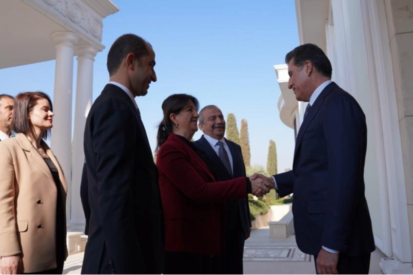 Pervin Buldan ve Sırrı Süreyya Önder, DBP Eş Genel Başkanı Keskin Bayındır, Dış İlişkiler Komisyonu Eş Sözcüsü Berdan Öztürk, milletvekilleri Gülcan Kaçmaz Sayyiğit ve Mehmet Kamaç ile avukatlarından oluşan DEM Parti İmralı Heyeti, Irak Kürdistan Bölgesel Yönetimi'nde (IKBY) temaslarını sürdürüyor. Dün KDP Başkanı Mesut Barzani ile görüşen DEM Parti İmralı heyeti, IKBY Başkanı Neçirvan Barzani ile görüştü. Neçirvan Barzani’nin ofisinde gerçekleşen görüşme yaklaşık 1 buçuk saat sürdü. Görüşmede İmralı Heyeti, Öcalan ile yapılan görüşmelere ilişkin bilgilendirmede bulundu, Barzani’nin sürece ilişkin görüş, öneri ve düşüncelerini aldı.