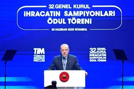 TİM'in 32'nci genel kuruluna başarılar diliyorum. İhracatın şampiyonları olarak iş insanlarımızı tebrik ediyorum. TİM 33 yıldır sadece çatı kuruluş olmanın ötesinde ihracatın stratejik aklını oluşturan, yön veren bir vizyon merkezi haline geldi. Şunu konuşmanın hemen başında belirtmek istiyorum. Türkiye'nin gıptayla takip edilen büyüme ve kalkınma hamlesi, işimiz üretim gücümüz ihracat ilkesini belirlemiş ihracatçıların özverili çabasıyla yazılıyor.