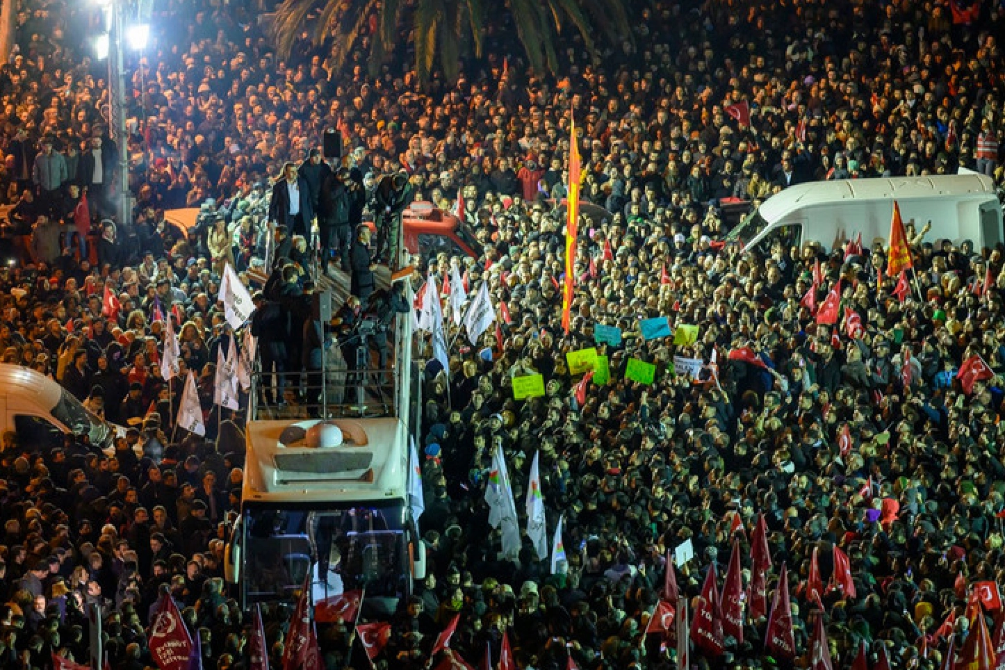 İstanbul Büyükşehir Belediye BaşkanıEkrem İmamoğlu'nun İstanbul Cumhuriyet Başsavcılığı’nın 'yolsuzluk' ve 'terör' suçlarından başlattığı iki ayrı soruşturma kapsamında bu sabah gözaltına alınmasının ardından CHP 'Milletin iradesine sahip çıkıyoruz' sloganıyla Saraçhane'de buluşma çağrısı yaptı. Gün boyunca protestoların sürdüğü Saraçhane'deki kalabalık her geçen saat arttı.