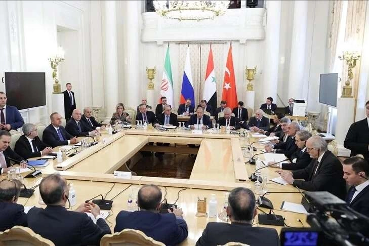 Ortak açıklamada, Dışişleri Bakanı Mevlüt Çavuşoğlu, Rusya Dışişleri Bakanı Sergey Lavrov, İran Dışişleri Bakanı Hüseyin Emir Abdullahiyan ve Suriye Dışişleri Bakanı Faysal el-Mikdad'ın katıldığı toplantıda bakanların Türkiye ve Suriye arasında devletlerarası ilişkilerin canlandırılmasına dair konularda çeşitli açılardan "içerikli ve açık bir görüşme" gerçekleştirdiği belirtilerek şu ifadelere yer verildi: "Katılımcılar, 2254 sayılı BMGK Kararı ve 'Astana Formatı' çerçevesinde yayınlanan resmi bildiriler uyarınca, Suriye'nin egemenliğine, toprak bütünlüğüne ve terörizmin tüm biçim ve tezahürleriyle mücadeleye olan bağlılıklarını teyit ettiler. Suriyelilerin anavatanlarına gönüllü, güvenli ve onurlu dönüşlerinin sağlanması ve ihtilaf sonrası yeniden inşanın kolaylaştırılması bakımından, Suriye'ye yönelik uluslararası yardımın artırılmasının taşıdığı önemin altı çizildi.
