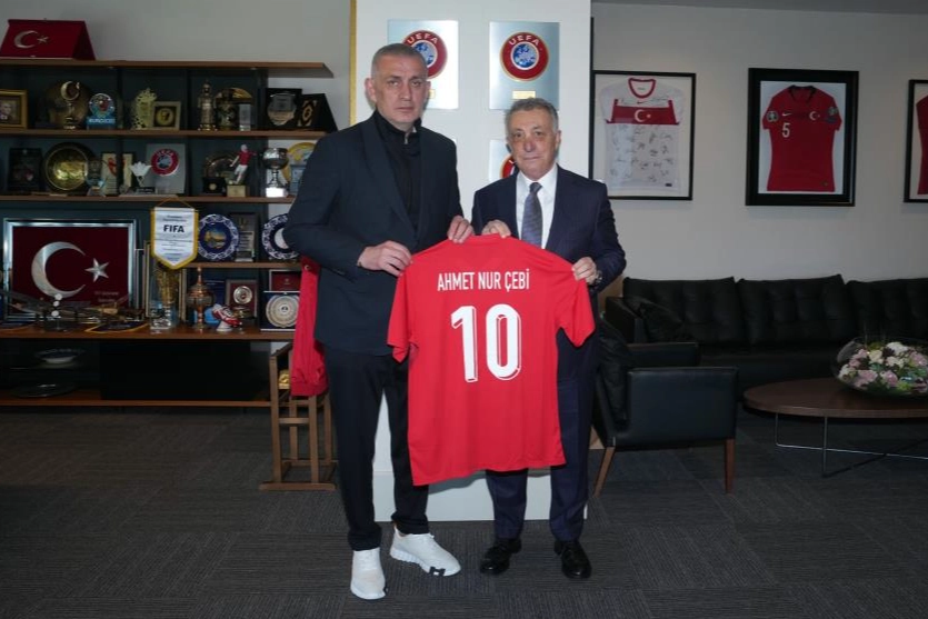 Riva Hasan Doğan Millî Takımlar Kamp ve Eğitim Tesisleri'nde gerçekleşen görüşmenin sonunda TFF Başkanı Hacıosmanoğlu, Ahmet Nur Çebi'ye üzerinde isminin yazılı olduğu bir A Milli Takım forması hediye etti.