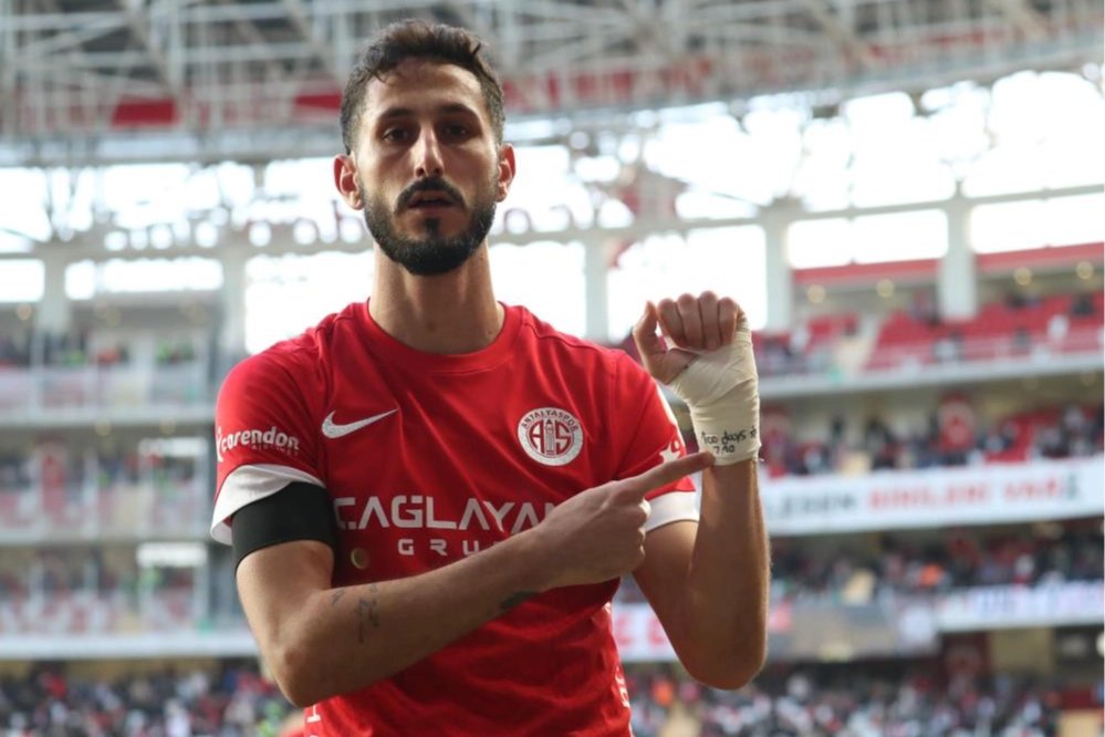 Trendyol Süper Lig'in 20. haftasında Antalyaspor, sahasında karşılaştığı Trabzonspor ile 1-1 berabere kalırken, Akdeniz ekibinin golünü atan İsrailli futbolcu Sagiv Jehezkel skandal bir gol sevinci yaptı. Müsabakanın 68. dakikasında Antalyaspor'un golünü kaydeden Jehezkel, gol sevincinde kolunda bulunan bandajdaki yazıları ekranlara gösterdi.