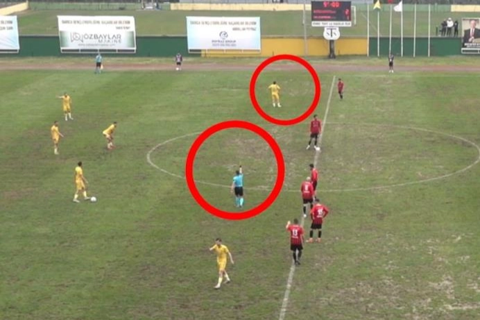 Kocaeli'de Darıca Gençlerbirliği ile Gölcükspor arasında oynanan Bölgesel Amatör Lig müsabakasında ilginç bir kural hatası yaşandı. Maçın orta hakemi Eren Delioğlu, iki sarı kart gösterdiği futbolcuyu kırmızı kartla oyundan atmayı unuttu.
