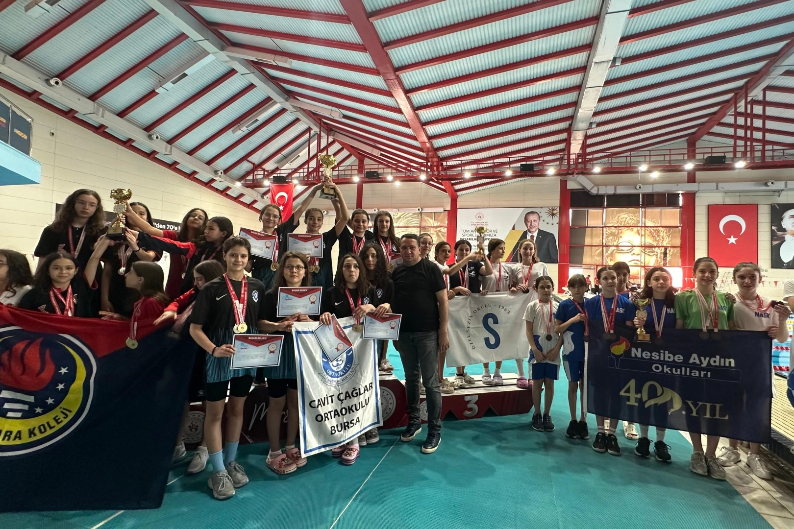 Mersin'de düzenlenen ve Türkiye'nin farklı illerinde bulunan okullar arasında düzenlenen yarışmada, Bursa'dan katılım sağlayan Cavit Çağlar Ortaokulu öğrencileri Bilge Bektaş, Meryem Çetin, Azra Derin Karabulut, Meyra Ulu, Azra Kocaman Büşra Şahin, Menekşe Kuzucuk ve Ela Bilgiç 14 altın ve 3 gümüş madalya alarak Türkiye şampiyonu oldu. Turnuva boyunca öğrencilerine destek veren Cavit Çağlar Ortaokulu Müdürü Ramazan Yürük, "Öğrencilerimizi tebrik ediyor, başarıları ile gurur duyuyorum. Hiçbir başarının tesadüf olmadığını biliyoruz. Yönetim olarak akademik başarının yanında, sportif ve kültürel başarılarını da önemsiyoruz. Öğrencilerimize, velilerimize ve antrenörlerimize teşekkür ederim" dedi.
