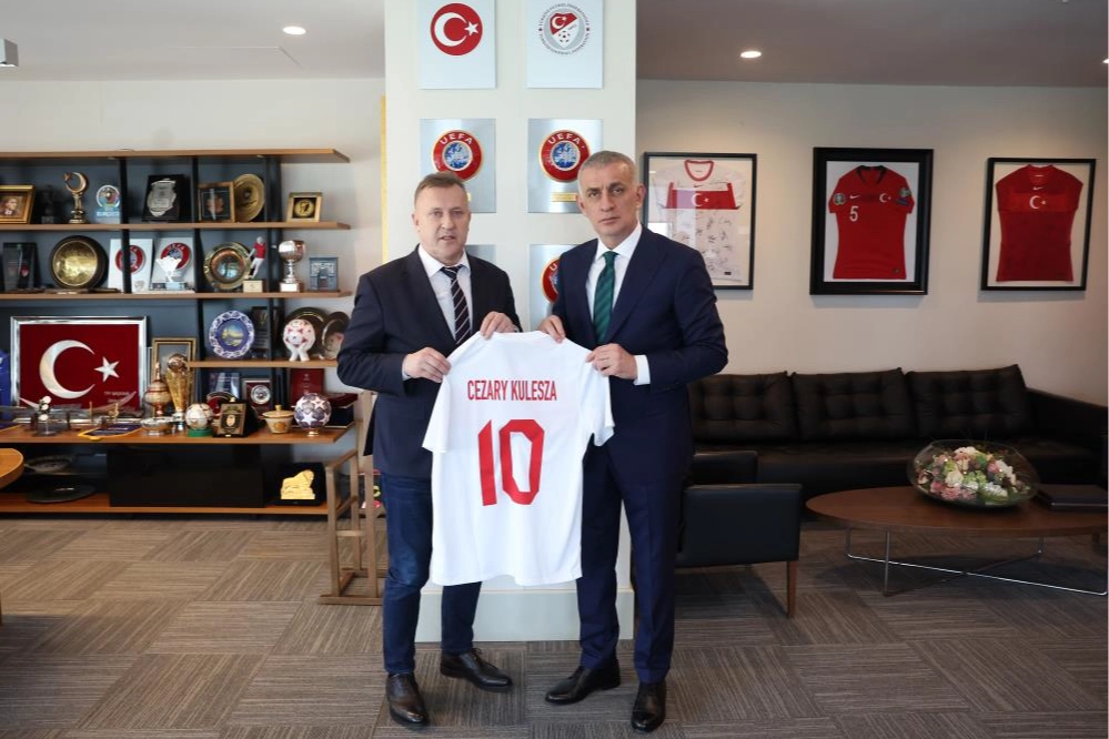 Polonya Futbol Federasyonu Başkanı Cezary Kulesza, Türkiye Futbol Federasyonu Başkanı İbrahim Ethem Hacıosmanoğlu'na ziyarette bulundu. TFF Riva Hasan Doğan Milli Takımlar Kamp ve Eğitim Tesisleri'nde gerçekleşen görüşmede TFF Genel Sekreteri Abdullah Ayaz, Polonya Futbol Federasyonu Genel Sekreteri Lukasz Wachowski ve TFF Başdanışmanı Yusuf Yerkel de yer aldı.