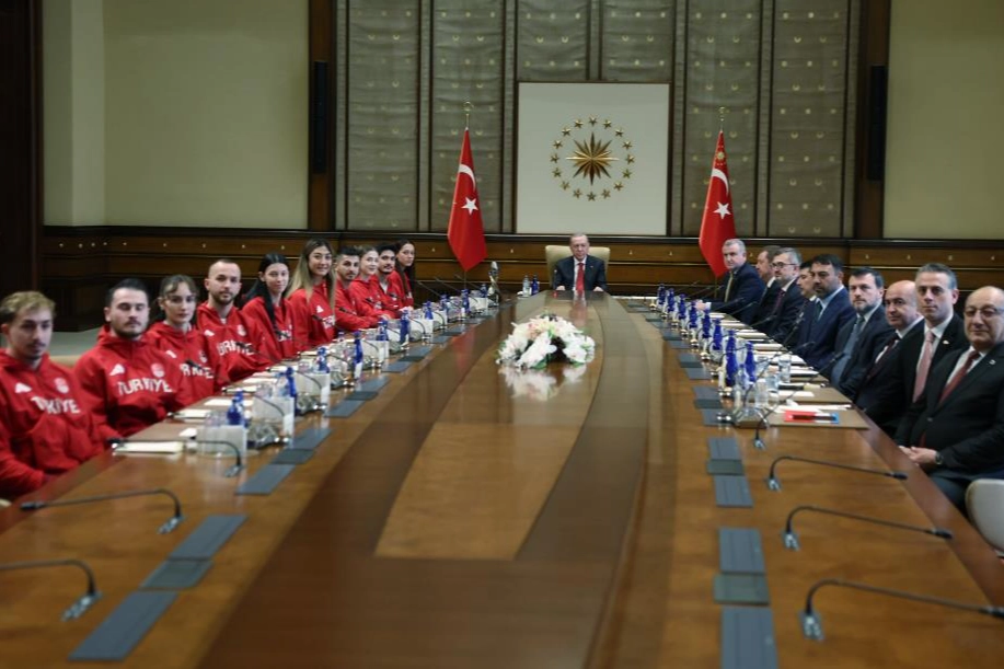 Cumhurbaşkanı Recep Tayyip Erdoğan, çeşitli branşlardan başarılı sporcuları Cumhurbaşkanlığı Külliyesi'nde kabul etti. Cumhurbaşkanı Erdoğan, kabul ettiği başarılı sporculara hitap etti. Konuşmasına, "Değerli temsilcilerim, sevgili misafirler, hepinize en kalbi duygularımla, muhabbetle selamlıyorum. Sizleri burada misafir etmekten büyük bir memnuniyet duyuyorum. Cumhurbaşkanlığı külliyemize, milletin evine hepiniz hoş geldiniz" sözleriyle başlayan Erdoğan, spor yapan, spora gönül veren tüm vatandaşlara selamlarını iletti. Cumhurbaşkanı Erdoğan, olimpiyatlar ile Avrupa ve dünya şampiyonalarında derece alan sporcuları tebrik ederek, "Sizler kazandığınız madalyalarla ülkemizi ve ay yıldızlı al bayrağımızı en güzel şekilde temsil ettiniz" ifadelerini kullandı. Sporcuların fiziksel dayanıklılıklarını güçlü bir psikolojiyle birleştirerek son ana kadar mücadele ettiğini belirten Erdoğan, "Bu gurur tablosu için hepinize şahsım ve milletim adına teşekkür ediyorum, başarılarınız inşallah daim olsun" dedi. Sporcuların gelecekte yeni uluslararası başarılara imza atacağına inandığını dile getiren Cumhurbaşkanı Erdoğan, gençlerin kişilikleri ve duruşlarıyla örnek olmaya devam edeceğini söyledi. Erdoğan, tüm sporcuların kendileri için kıymetli olduğunu vurgulayarak, "Dereceye girsin ya da girmesin, ülkemiz için yarışan, ter döken her bir sporcumuzla millet olarak iftihar ediyoruz" ifadelerini kullandı. "Sporda da Türkiye Yüzyılı hedeflerimize ulaşmak için büyük bir çaba harcıyoruz" Türkiye’nin sporda küresel ölçekte daha üst seviyelere çıkması için çalışmaların sürdüğünü belirten Cumhurbaşkanı Erdoğan, Gençlik ve Spor Bakanlığı ile federasyonlar başta olmak üzere tüm kurumların sporcu desteklerini ve yatırımlarını artırdığını hatırlattı. Erdoğan, "Diğer alanlarda olduğu gibi, sporda da Türkiye Yüzyılı hedeflerimize ulaşmak için büyük bir çaba harcıyoruz" ifadelerini kullandı. Çocuklara ve genç sporculara en gelişmiş imkanları sunmak için finansman ve altyapı çalışmalarının devam ettiğini belirten Cumhurbaşkanı Erdoğan, "İnşallah bu istikametteki çalışmalarımızı kararlılıkla sürdüreceğiz. Rabbim yar ve yardımcınız olsun" diye konuştu. Cumhurbaşkanı Erdoğan, konuşmasının sonunda sporcuları bir kez daha tebrik ederek, "Sizleri büyüten anne ve babalarınıza, sportif başarılarınızdan payı olan hocalarımıza selamlarımı, tebriklerimi, şükranlarımı iletiyorum. Ziyaretiniz için tekrar teşekkür ediyorum" dedi. Kabulde; Gençlik ve Spor Bakanı Osman Aşkın Bak, Cumhurbaşkanlığı İletişim Başkanı Burhanettin Duran, Cumhurbaşkanlığı Özel Kalem Müdürü Hasan Doğan ve Cumhurbaşkanlığı Genel Sekreteri Hakkı Susmaz ve davetliler yer aldı. Cumhurbaşkanlığı Külliyesi’nde gerçekleşen kabulde taekwondo, halter ve karate branşlarında uluslararası şampiyonalarda derece elde eden milli sporcular yer aldı. Taekwondo branşından Emine Göğebakan, Merve Dinçel Kavurat, Nafia Kuş Aydın, Elif Sude Akgül, kabulde hazır bulundu. Halter branşında Muhammed Furkan Özbek, Yusuf Fehmi Genç ve Cansel Özkan; karate branşında ise Enes Özdemir, Eray Şamdan ve Hasan Arslan kabulde bulunan isimler arasında yer aldı.