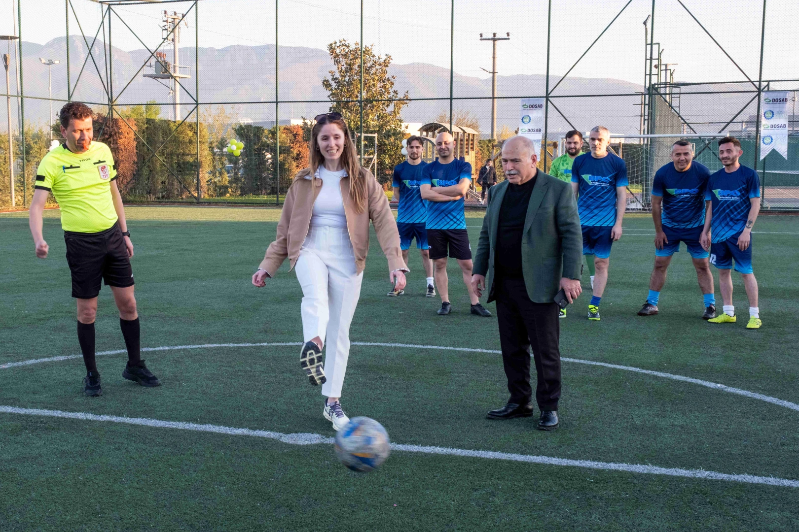 Bölgedeki çalışanlar arasında dostluğu, takım ruhunu ve dayanışmayı güçlendirmek amacıyla düzenlenen, DOSAB-DOSABSİAD Firmalar Arası Futbol Turnuvası’nın açılışı, DOSAB Sosyal Tesisleri Halı Sahası’nda gerçekleştirildi. Turnuvanın açılış maçına; DOSABSİAD Yönetim Kurulu Başkanı Onur Kutlualp ve Yönetim Kurulu Üyesi Ece Nur Şahin ile DOSAB Yönetim Kurulu Başkanı Levent Eski ve Yönetim Kurulu Üyesi Kemal Işık katılarak takımların heyecanına ortak oldu.