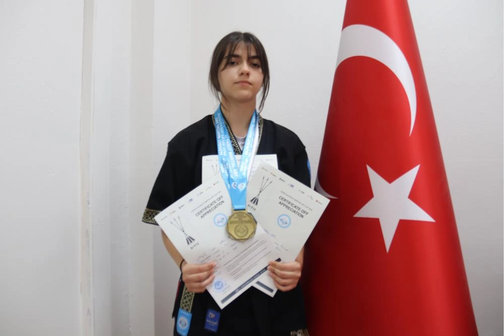 Gürcistan'ın Kutaisi kentinde düzenlenen Alpagut Dünya Şampiyonası'nda altın madalya kazanan 16 yaşındaki Nisa Nur Tur, İstiklal Marşı'nı okutmanın gururunu yaşadığını ve ileride milli sporcu olmayı hedeflediğini söyledi.
