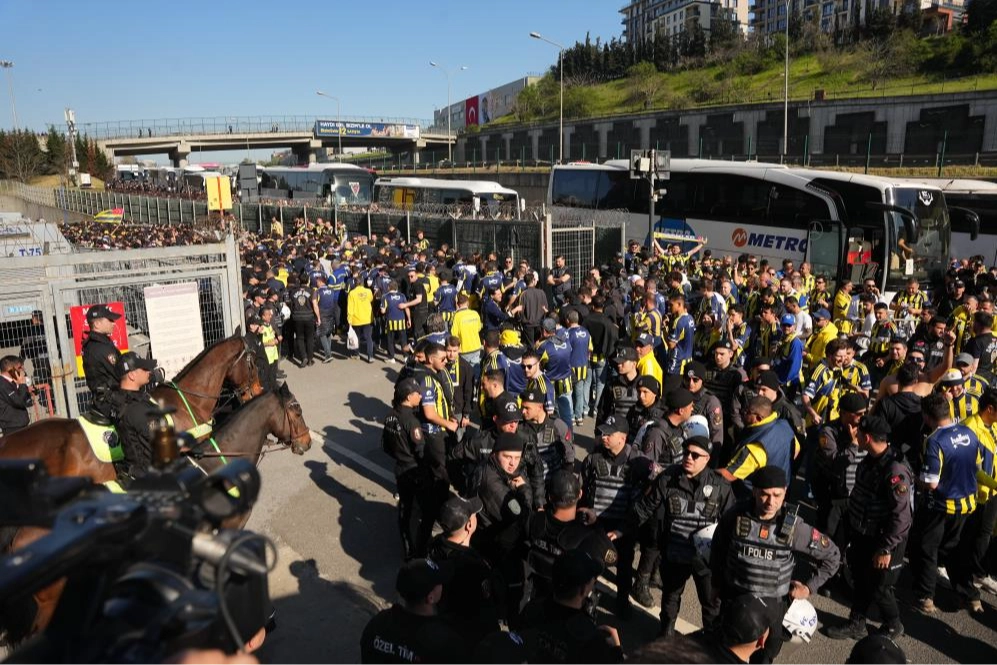 Trendyol Süper Lig’in 31. haftasında Galatasaray ile Fenerbahçe saat 20.00'de RAMS Park'ta karşı karşıya gelecek. Bu zorlu müsabakayı İl Spor Güvenlik Kurulu kararı gereği 2 bin 488 sarı-lacivertli taraftar da stattan takip edecek. Bugün saat 15.00'te Fenerbahçe Şükrü Saracoğlu Spor Kompleksi önünde toplanan taraftarlar bilet kontrolünün ardından otobüslere bindi. Fenerbahçe yönetimi de deplasmanda takımlarını takip edecek taraftarlara jest yaparak çubuklu forma hediye etti. Taraftarlar daha sonra maçın oynanacağı stadyuma hareket etti. Fenerbahçe taraftarını taşıyan 45 otobüs stada ulaştı. Yoğun güvenlik önlemleri altında geçiş yapan sarı-lacivertli taraftarlar beste ve tezahüratlarla tribünlere giriş yaptı.