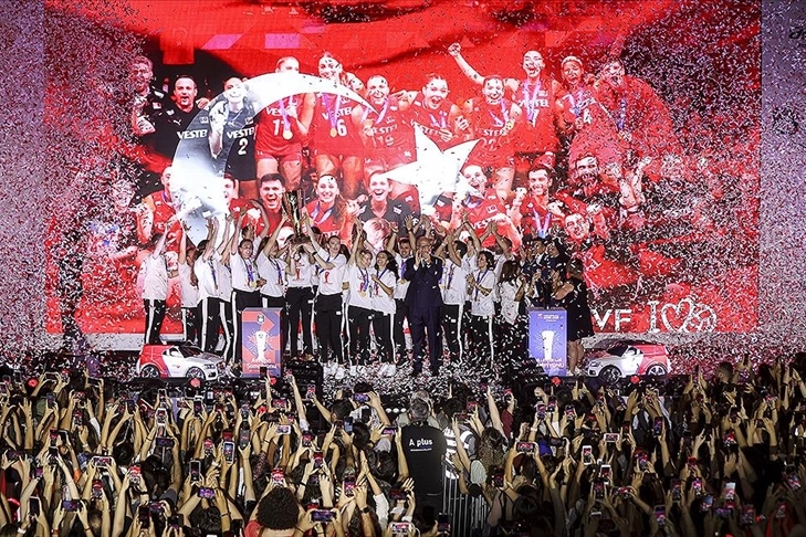 Galataport'ta gerçekleşen kutlama öncesinde FIVB Milletler Ligi ve CEV Avrupa Şampiyonası'nda kazanılan kupalar, kürsüye getirildi.