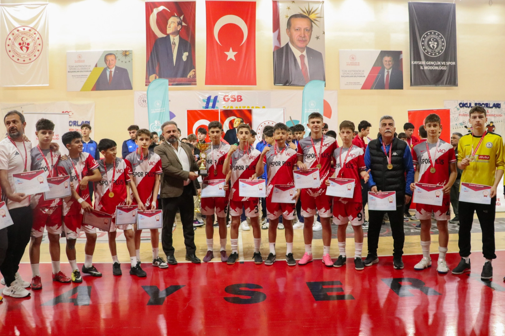 Kayseri Atatürk Spor Salonu’nda 5 gün devam eden Okul Sporları Futsal Yıldız Erkekler Türkiye İl Birinciliği yapılan final müsabakaları ile tamamlandı. Müsabakalarda dereceye giren sporculara düzenlenen tören ile kupa ve madalyaları Melikgazi Gençlik ve Spor İlçe Müdürü Atalay Yaman, Okul Sporları Şube Müdürü Ahmet Metin ve Sportif Faaliyetler Şube Müdürü Yakup Deliktaş tarafından takdim edildi. Dereceye giren okul takımları ise şu şekilde: 1.Bursa Vahide Aktuğ Ortaokulu 2. Kilis 15 Temmuz Şehitleri Ortaokulu 3. Kuzey Kıbrıs Türk Cumhuriyeti Türk Maarif Koleji 4. Adana Şehit Halit Yaşar Mine Ortaokulu