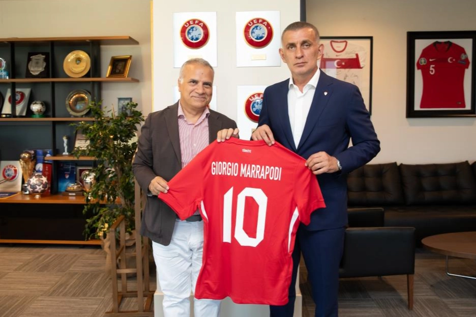 Ziyaretin sonunda İbrahim Hacıosmanoğlu, Giorgio Marrapodi’ye üzerinde isminin yazılı olduğu A Milli Takım forması takdim etti.