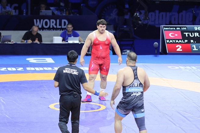 Başkent Belgrad'daki organizasyonda Rıza Kayaalp, grekoromen stil 130 kiloda final müsabakasında İranlı Amin Mirzazadeh ile karşılaştı.