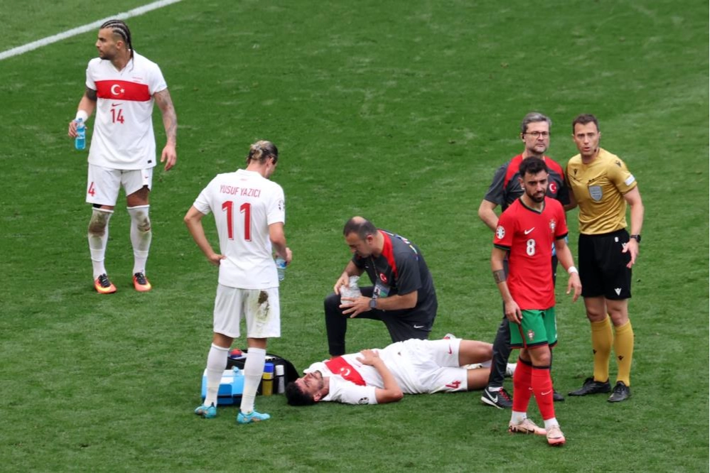 2024 Avrupa Futbol Şampiyonası’nda F Grubu ikinci maçında A Milli Futbol Takımı, BVB Stadyumu'nda Portekiz ile karşı karşıya gelirken, millilerde üzücü bir an yaşadı. Defans oyuncusu Samet Akaydin bir pozisyon sonrasında sakatlandı ve oyuna devam edemedi.