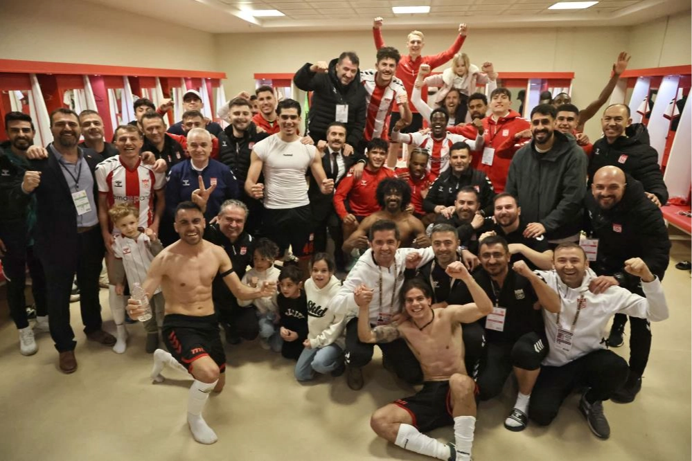 Sivasspor, Trendyol Süper Lig’in 27. haftasında Göztepe’yi konuk etti. Bekir Böke’nin 2, Charis Charisis'in 1 golüyle rakibini 3-1 mağlup eden kırmızı-beyazlılar, maçın ardından büyük sevinç yaşadı. Sivassporlu futbolcular, Göztepe karşılaşmanın ardından soyunma odasında galibiyet pozu verdi. Söz konusu fotoğraf, Sivasspor'un sosyal medya hesabından, 'Sivasımıza armağan olsun' notuyla paylaşıldı