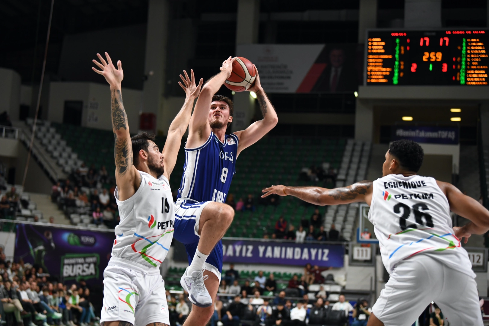 Türkiye Sigorta Basketbol Süper Ligi Asım Pars Sezonu 22. hafta mücadelesinde TOFAŞ, Aliağa Petkimspor’a konuk oluyor. Ligde 15 galibiyet-6 mağlubiyet ile 4. sırada yer alan ve normal sezonu ilk 4 içerisinde tamamlamak isteyen Mavi Yeşilliler, İzmir deplasmanından da galibiyetle dönmeyi hedeflerken, Bursa ekibi sezonun ilk yarısında sahasında oynadığı mücadelede Petkimspor’u 107-99 mağlup etmeyi başarmıştı. Burak Gören yönetimindeki Aliağa Petkimspor, 8 galibiyet-11 mağlubiyet ile 11. sırada yer alırken, ligdeki son 6 maçında bir galibiyeti bulunan İzmir temsilcisi hafta arasında oynadığı Basketbol Şampiyonlar Ligi karşılaşmasında da sahasında Lenovo Tenerife’ye 80-85 mağlup olmuştu.