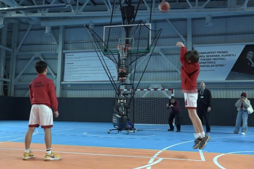 Uludağ İçecek Türk A.Ş., öğrenci ve genç sporculara basketbol şut makinesi hediye etti.