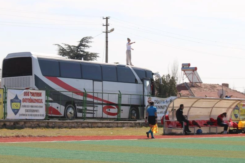 Eskişehirspor Kadın Futbol Takımı Teknik Direktörü Pınar Konca, kırmızı kart cezası nedeniyle Denizli Sultanlar Spor maçında takım otobüsünün üstüne çıkarak taktik verdi.