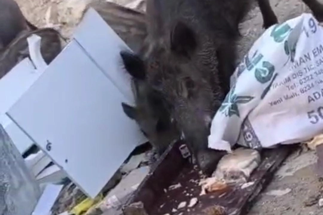 Defne ilçesi Harbiye Mahallesi'nde aç kalan domuz ve yavruları yerleşim yerine indi. Sıklıkla bölgede yaşayan vatandaşlarca görülen domuzlar, geçtiğimiz gün çöp konteynerinin çevresinde yem ararken görüntülendi. Bir süre yem arayan domuzlar, çevreye zarar vermeden gözden kayboldu. Domuzların yiyecek aradığı o anlar kameraya yansıdı.