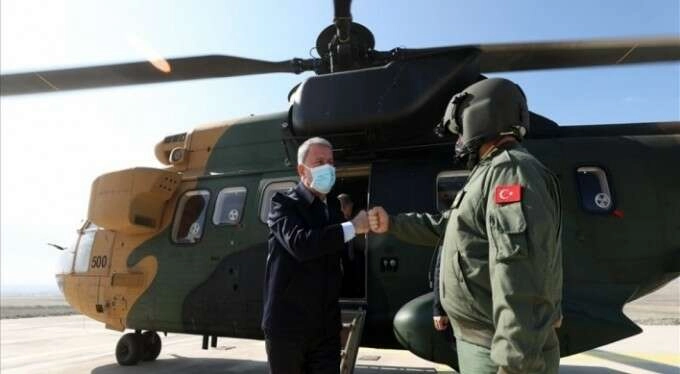 Terörle mücadelenin artan bir şiddet ve tempoda kararlılıkla devam ettiğini vurgulayan Akar, "Irak'ın kuzeyi başta olmak üzere terörle mücadelemiz kararlılıkla devam ediyor. Teröristlerin inlerine, mağaralarına, sığınaklarına girildi, girilmeye devam ediyor. İnleri başlarına yıkıldı, yıkılacak. Mehmetçik arazide görülmemiş başarı ve kahramanlıklarla vazifesini yerine getiriyor" ifadelerini kullandı.