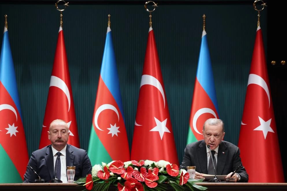 Cumhurbaşkanı Erdoğan, Azerbaycan Cumhurbaşkanı İlham Aliyev ile Beştepe’de gerçekleşen ortak basın toplantısında konuştu. Cumhurbaşkanı Erdoğan, "Aziz kardeşim İlham Aliyev’i halkının yüksek teveccühü ile 5’inci defa can Azerbaycan’ın cumhurbaşkanı seçilmesi vesilesiyle bir kez daha tebrik ediyorum. İlham kardeşimin cumhurbaşkanı seçilmesinin hemen ardından ilk resmi yurt dışı ziyaretini Türkiye’ye yapmasından büyük bir bahtiyarlık duyuyorum. Bildiğiniz üzere 7 Şubat’ta gerçekleştirilen cumhurbaşkanlığı seçimleri ilk defa Azerbaycan’ın egemen topraklarının tümünde düzenlenmiş olması nedeniyle tarihi bir öneme sahiptir. Seçim sonuçlarının Türkiye-Azerbaycan münasebetleri ve kardeş Azerbaycan halkı için hayırlara vesile olmasını diliyorum" diye konuştu.