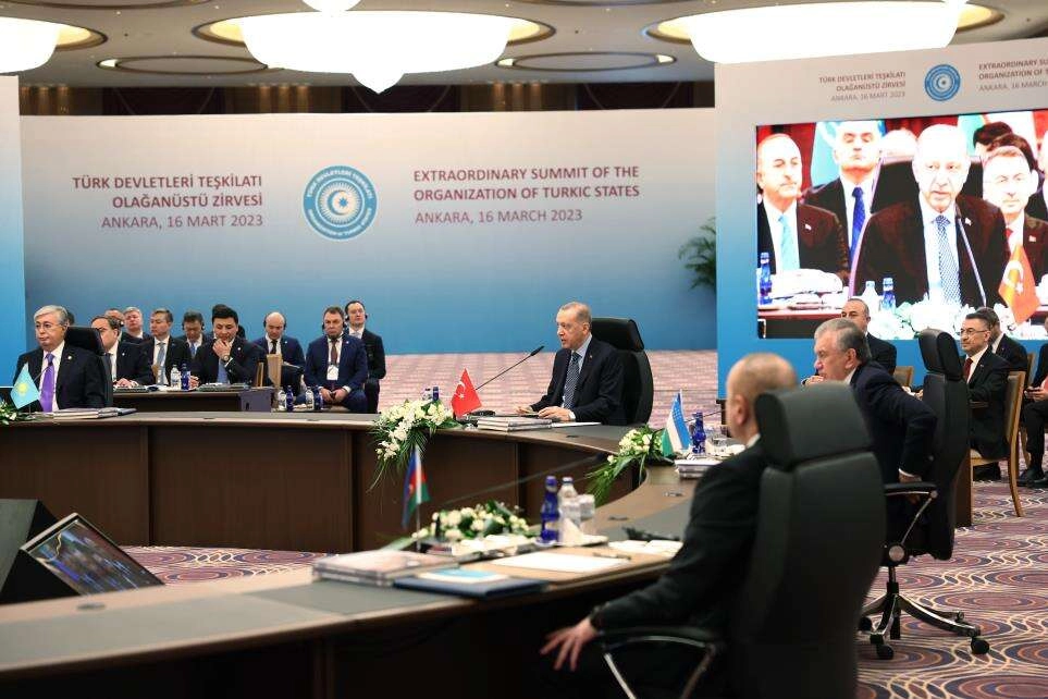 Türk Devletleri Teşkilatı (TDT) Olağanüstü Zirvesi, Cumhurbaşkanı Recep Tayyip Erdoğan’ın ev sahipliğinde, “Afet-Acil Durum Yönetimi ve İnsani Yardım” teması altında Ankara’da toplandı. Cumhurbaşkanı Erdoğan, Türk Devletleri Teşkilatı Devlet Başkanları Olağanüstü Zirve Toplantısı’nda konuştu. Bu toplantının başarılı şekilde icra edilmesi için gayretlerini esirgemeyen Özbekistan Cumhurbaşkanı Mirziyovev’e ve katılımcılara teşekkür eden Erdoğan, Teşkilatın gözlemci Üyesi KKTC'nin Cumhurbaşkanı Ersin Tatar'ın da zirvede bulunmasından memnuniyet duyduğunu belirtti. Bugün gerçekleşen zirve ile Türk dünyasının tek yürek, tek vücut olduğunu en üst düzeyde bir kez daha göstermiş olacaklarını belirten Cumhurbaşkanı Erdoğan," Ülkemizin güneyindeki 11 şehir 6 Şubat günü şiddet ev yıkıcılığı itibari ile dünyada eşme az rastlanır bir tabi afetle sarsıldı. Bu depremlerden yaklaşık 14 milyon vatandaşımız doğrudan etkilenirken 49 binden fazla insanımız hayatını kaybetti. 115 binden fazlası yaralandı. Bu büyük felaketin yaralarını sarmak için tüm imkanlarımızı seferber ettik. Arama kurtarma çalışmalarını bitirdik. Enkaz kaldırma faaliyetlerini bitirirken ve geçici barınma konteynerleri kurarken süratle kalıcı inşaatların yapımına başladık" dedi. Önümüzdeki bir yıl içinde 319 bin toplamda 650 bin konut yaparak hak sahiplerine teslim etmeyi planladıklarını belirten Erdoğan, dost ve kardeş ülkelerin desteği ile deprem bölgesini çok kısa sürede yeniden ayağa kaldıracaklarını belirtti. Deprem bölgesinde yaşanan sel felaketinin ayrı bir afet olduğunu belirten Erdoğan, "Henüz depremin yaralarını sarmakla meşgulken aynı bölgede bir de sel felaketine maruz kaldık. Eşine rastlanmamış bir yağışın yol açtığı selde çok sayıda vatandaşımız hayatını kaybederken yerleşim yerlerimizde ciddi hasarlar oluştu. Bu ölçekteki afetler karşısında eldeki imkanlar yetersiz kalıyor" açıklamasını yaptı. Türkiye'nin 6 Şubatta yaşanan depremlerin şiddetinin ve yıkımının büyüklüğü sebebi ile uluslararası yardım çağrısında bulunduğunu hatırlatan Cumhurbaşkanı Erdoğan, Türk Dünyası'nın yardıma ilk koşanlar arasında yer aldığına dikkat çekti. Erdoğan, "Acılar paylaşıldıkça azalır anlayışıyla en zor anımızda bizi yalnız bırakmadınız. Arama kurtarma ekipleriniz bir çok vatandaşımızı yeniden hayata bağladı. Kurduğunuz sahra hastaneleriyle yaralılarımızın tedavisine yardım ettiniz. Gönderdiğiniz ata yadigârı çadırlar vatandaşlarımıza yuva oldu. Aziz milletimiz bu desteğinizi unutmayacaktır" dedi. BM'nin 16 şubat tarihinde Türkiye için acil yardım çağrısı yayımladığını söyleyen Erdoğan," AB komisyonu ve dönem başkanı İsveç tarafından 20 Mart'ta uluslararası bağışçılar Konferansı düzenlenecek. Bu uluslararası yardım faaliyetlerine de destek vereceğinizden şüphe duymuyorum. Afetler ve etkileriyle mücadelede çok taraflı iş birliğini artırmamız gerektiği aşikardır" açıklamasını yaptı. Teşkilat bünyesinde bu yönde bazı adımların atıldığını kaydeden Cumhurbaşkanı Erdoğan, Aralık ayında İçişleri Bakanlığı ev sahipliğinde Ankara’da Afet ev Acil Durum Yönetimi Bakanlar Toplantısı yapıldığını hatırlattı. Teşkilatın sivil koruma mekanizmasının korunmasıyla afet süreçlerini daha etkin planlama ve uygulama kabiliyetine kavuşulacağını söyleyen Erdoğan, "Bildiri taslağımızı da yansıtıldığı üzere Türkistan’da düzenleyeceğimiz müteakip zirvemize kadar mekanizmanın tesisine ilişkin anlaşmanın imzalanması yönünde gereken talimatları vereceğinize inanıyorum. 2021 yılındaki İstanbul Zirvesi’nde mutabık kaldığımız akıllı şehirler ve yeşil teknolojiler çerçvesinde dayanıklı ve sürdürülebilir kalkınma hedefleri istikametinde çalışmaları sürdürüyoruz. Semerkant Zirvesi'nde ticaret ve ekonomik bütünleşmeyi artıracak önemli adımlar attık. Kuruluş anlaşması bugün imzalanacak Türk yatırım fonunun oluşturulması bu adımların başında geliyor. Bu fon sayesinde KOBİ'lere, ulaştırma lojistik projelerine, tarım ve turizm alanlarındaki yatırımlara ve yenilebilir enerji çalışmalarına destek sağlanacaktır" diye konuştu. Tüm bu alanlarda firmaların finansmana erişimi kolaylaşacak bölge içi ticaretin de teşvik edileceğini belirten Erdoğan," Bu süreçteki kıymetli destekleriniz ve katkılarınızdan dolayış sizlere teşekkür ediyorum. Semerkant Zirvesi'nde ticaret ve ulaştırmanın gelişmesi için imzalanan belgelerinde hızla hayata geçirilmesini arzu ediyoruz. Enerjinin sürdürülebilir şekilde tedariki ve enerji fiyatlarının makul seviyelere çekilmesi ekonomilerimiz için büyük önem arz ediyor. Bugüne kadaır Hazar havzasında Türk dünyası ülkeleri ile petrol, doğal gaz ve elektrik alanlarında deerinlikli projeleri başarıyla hayata geçirdik. Bakü-Tiflis-Ceyhan boru hattı 16 senedir Azerbaycan, Türkmenistan ve Kazakistan petrolünü dünya piyasalarına devamlı şekilde taşıyor. Türk Devletleri Teşkilatı olarak bölgesel ulaştırma ve tedarik zincirlerinin geliştirilmesi yanında enerji güvenliğinin sağlanmasında da stratejik rol üstlenileceğine inandığını belirten Cumhurbaşkanı Erdoğan,"Bel kemiğini TANAP'ın oluşturduğu güney gaz koridoru sayesinde Türk Devletleri Avrupa'nın enerji güvenliğinde anahtar konuma gelmiştir Türk devletleri Teşkilatı olarak bölgesel ulaştırma ve tedarik zincirlerinin geliştirilmesi yanında enerji güvenliğinin sağlanmasında da stratejik yol üsteleneceğimize inanıyorum. Doğu- Batı arası ticarette ortak çabalarımızla hayata geçirdiğimiz orta koridor artık güvenilir bir alternatif sunuyor. Önümüzdeki dön