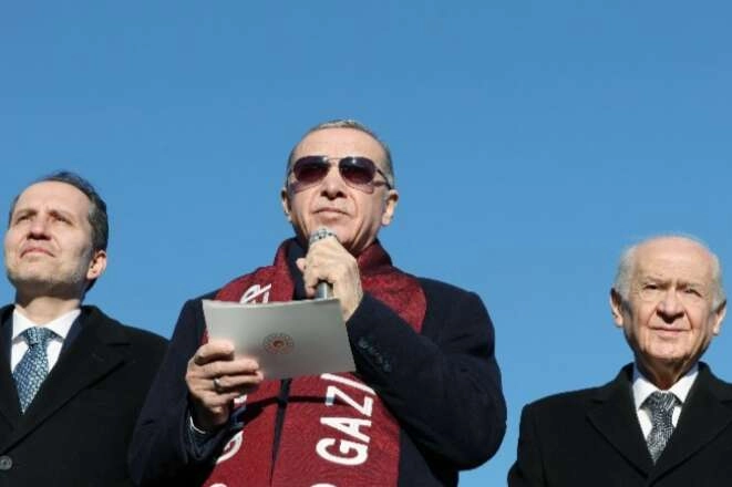Cumhurbaşkanı Recep Tayyip Erdoğan, Milliyetçi Hareket Partisi Genel Başkanı Devlet Bahçeli ve Yeniden Refah Partisi Genel Başkanı Fatih Erbakan ile birlikte Kahramanmaraş merkezli depremlerden en çok etkilenen Gaziantep’in Nurdağı ilçesindeki yapımına başlanılacak olan 7 bin 87 kalıcı konutun temel atma törenine katıldı. Burada konuşan Cumhurbaşkanı Erdoğan, muhalefeti sert sözlerle eleştirirken, masa altından pazarlıklara milletin izin vermeyeceğini söyledi. Erdoğan’ın adaylığına itiraz etmek için Anayasa Mahkemesine gideceğini söyleyenlere de yolunuz açık olsun ifadesini kullandı.