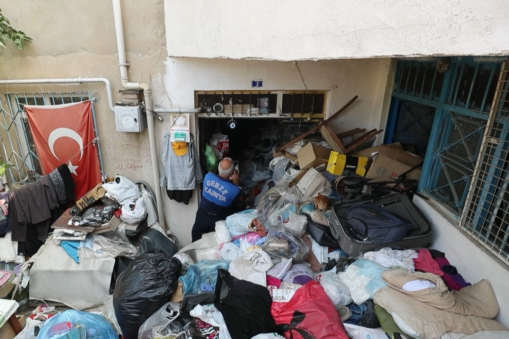 Köşklü Çeşme Mahallesi 532/2 Sokaktaki 4 katlı binadan yoğun kokuların gelmesi üzerine vatandaşlar ihbarda bulundu. İhbar üzerine Gebze Kaymakamlığı Hıfzıssıhha Kurulu harekete geçti. Gebze Belediyesi ekiplerinin sevk edildiği N.Ç. ve M.Ç'ye ait daireden çıkartılan çöpler kamyonlarla taşındı.