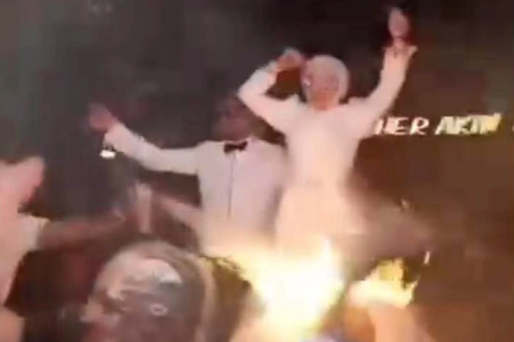 Mersin'in Silifke ilçesinde gerçekleştirilen düğün merasiminde yaşanan olay, konuklardan birinin cep telefonu kamerasına yansıdı. Sosyal medyada da paylaşılan görüntülerde, düğün merasimi sırasında düzenlenen eğlencede gelin ve damat pistte oynadığı sırada köpüklü ve meşaleli şov gerçekleştirildiği anlar yer aldı. Eğlence sırasında kafasına köpük sıkılan bir kişinin saçlarının, elde gezdirilen meşaleden sıçrayan kıvılcımlar nedeniyle alev aldığı anlar da görüntülere yansıdı. Kısa süreli paniğin yaşandığı olayda, saçları alev alan kişi alevleri eliyle söndürerek yanmaktan kurtuldu.