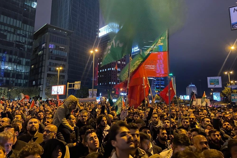 İsrail'in Gazze'de el-Ehli Baptist Hastanesi'ni bombalamasının ardından binlerce vatandaş, İstanbul’daki İsrail Başkonsolosluk binası önünde protesto yaptı. Ellerinde Filistin ve Türk bayraklarıyla konsolosluğun önünde toplanan kalabalık, ‘Katil İsrail Filistin’den defol’, ‘Mehmetçik Gazzeye‘, sloganları attı.