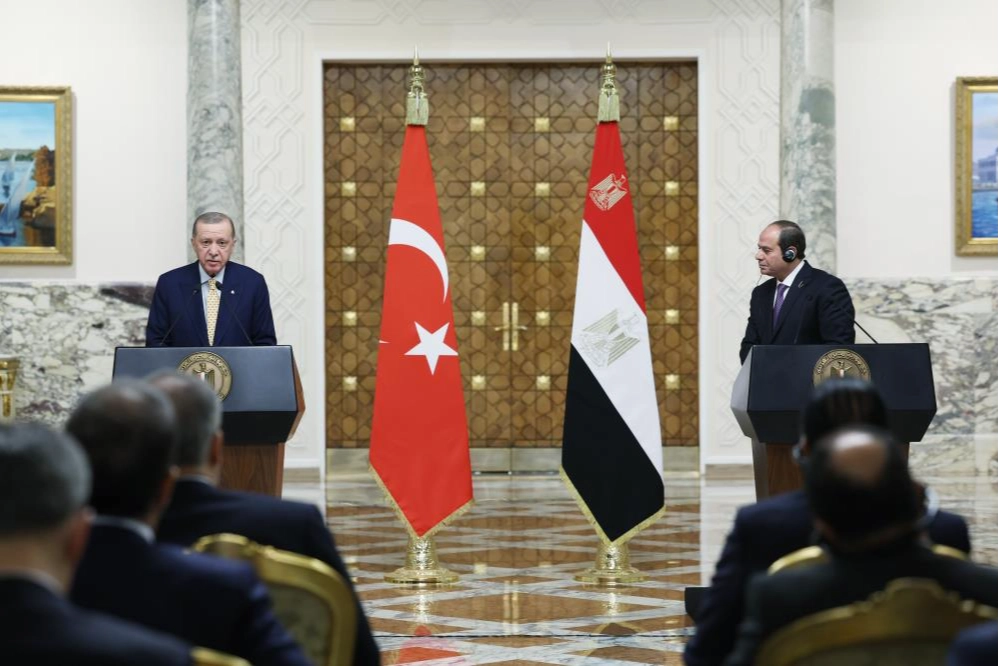 Mısır Cumhurbaşkanı Abdulfettah es-Sisi ile Cumhurbaşkanı Recep Tayyip Erdoğan, Mısır’ın başkenti Kahire’de ortak basın toplantısı düzenledi. Mısır Cumhurbaşkanı es-Sisi, Cumhurbaşkanı Erdoğan'ın ülkesini on yılı aşkın bir süre sonra ziyaret etmesinden duyduğu memnuniyeti dile getirerek, "İki ülke arasında yeni bir sayfa açıyoruz" ifadelerini kullandı. Cumhurbaşkanı Erdoğan ile Gazze Şeridi'ndeki durumu ele aldıklarına değinen Sisi, "Gazze'de derhal ateşkes sağlanması ve Batı Şeria'daki gerilimin yatıştırılması konusunda Türkiye Cumhurbaşkanı ile aynı fikirdeyim" dedi. Türkiye ile iş birliği vurgusu yaparak, "Mısır ve Türkiye el ele vererek Gazze konusunda da çok iyi sonuçlar elde edebilecek" ifadelerini kullanan Sisi, "Yakın zaman içerisinde (Türkiye ile) 15 milyar dolarlık ticaret hedefini gerçekleştirmeyi amaçlıyoruz" dedi. Cumhurbaşkanı Erdoğan'ın kendisini Türkiye'yi ziyaret etme davetinde bulunduğuna değinen Sisi, "Cumhurbaşkanı Erdoğan'ın önümüzdeki nisan ayında Türkiye'yi ziyaret etme davetine icabet etmeyi sabırsızlıkla bekliyorum” ifadesinde bulundu. Mısır Cumhurbaşkanı es-Sisi, “Mısır, Türkiye'nin Afrika'daki bir numaralı ticaret ortağı, Türkiye de Mısır ihracatının en önemli destinasyonlarından biridir” dedi. Türkiye ile Mısır’ın bölgedeki coğrafik konumuna işaret eden Sisi, bölgede etkin olan bu iki ülkenin barış ve istikrarın sağlanmasında önemli rol oynayabileceğini vurguladı. Sisi, Cumhurbaşkanı Erdoğan ile Filistin'de barış sürecinin yeniden başlatılması konusunda fikir birliği içinde olduklarını dile getirerek, bu sürecin uluslararası hukuk çerçevesinde başkenti Doğu Kudüs olan 1967 sınırları üzerinde bir Filistin devletinin kurulmasıyla sonuçlanması gerektiğini kaydetti. Libya'daki durum Libya meselesine değinen Sisi, “Libya’da cumhurbaşkanlığı ve parlamento seçimlerinin yapılması ve askerlik kurumunun birliğinin sağlanmasına yardımcı olacak şekilde Türkiye ile Mısır arasındaki istişarenin güçlendirilmesinin gerekliğini teyit ettik” ifadelerini kullandı Libya’da istikrarın sağlanmasının önemine vurgu yapan Sisi, istikrarın Doğu Akdeniz’de hakim olmasından duyduğu memnuniyeti dile getirdi. Cumhurbaşkanı Erdoğan’la Afrika’daki durumu da ele aldıklarına dikkati çeken Sisi, istikrar ve refahın sağlanması için Afrika’da işbirliğine önem verdiklerini kaydetti.