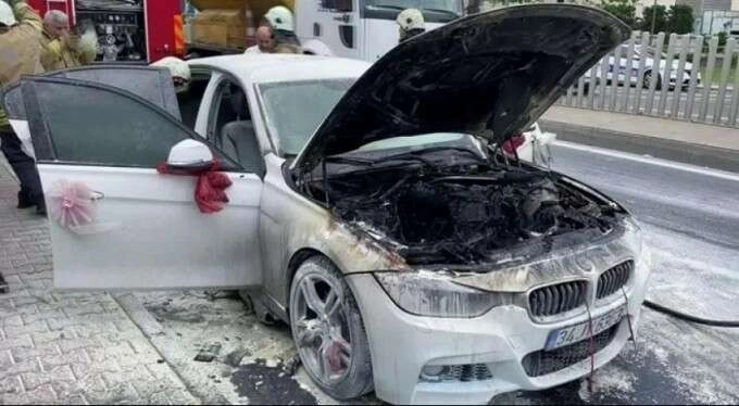 Edinilen bilgiye göre; içerisinde gelin ve damadın da bulunduğu araç, konvoy halindeyken bir anda yanmaya başladı. Diğer araçların kornalı uyarısıyla alevleri fark eden sürücü aracı durdurdu. Gelin, damat ve sürücü hızla aracı terk etti.