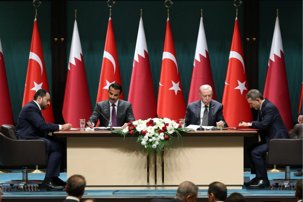 Cumhurbaşkanı Recep Tayyip Erdoğan ve Katar Emiri Şeyh Temim bin Hamed el Sani Cumhurbaşkanlığı Külliyesi'nde gerçekleştirdikleri baş başa görüşmenin ardından "Türkiye-Katar Yüksek Stratejik Komite Onuncu Toplantısı"na başkanlık etti. Toplantı sonrası iki ülke arasında yapılacak anlaşmaların imza törenine gerçekleştirildi. Bu kapsamda Cumhurbaşkanı Erdoğan ve el Sani huzurunda önemli işbirliklerini kapsayan 8 anlaşma anlaşma imzalandı. Anlaşmalar şu şekilde; " - Türkiye Cumhuriyeti hükümeti ile Katar Devleti Hükümeti Arasında İnsani Yardım Alanında İşbirliği Anlaşması - Türkiye Cumhuriyeti Hükümeti ile Katar Devleti Hükümeti Arasında Belgeler ve Arşivler Alanlarında İşbirliğine İlişkin Mutabakat Zaptı - Türkiye Cumhuriyeti Hükümeti ile Katar Devleti Hükümeti Arasında Medya ve İletişim Alanında İş Birliğine İlişkin Mutabakat Zaptı - Türkiye Cumhuriyeti Hükümeti ile Katar Devleti Hükümeti Arasında Gençlik ve Spor Alanlarında (2025-2026) Yıllarına Ait Uygulama Programı - Türkiye Cumhuriyeti Hükümeti ile Katar Devleti Hükümeti Arasında Uluslararası Karayolu Yolcu ve Eşya Taşımacılığı Alanında İşbirliği Anlaşması - Türkiye Cumhuriyeti Hükümeti ile Katar Devleti Hükümeti Arasında Ticaretin Kolaylaştırılmasına İlişkin Niyet Beyanı - Savunma Bakanlıkları Arasında Teknik İşbirliği Anlaşması - Savunma Bakanlıkları Arasında Askeri İşbirliği Anlaşması." Törende Dışişleri Bakanı Hakan Fidan ile Katar Dışişleri Bakanı Şeyh Muhammed bin Abdurrahman bin Casim El Sani "Türkiye-Katar Yüksek Stratejik Komite Onuncu Toplantısı" bildirisini imzaladı.