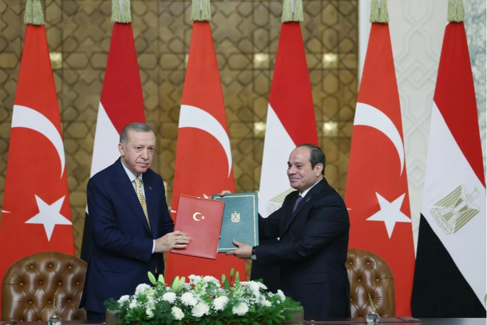 Cumhurbaşkanı Recep Tayyip Erdoğan, resmi temaslarda bulunmak üzere geldiği Mısır'ın başkenti Kahire'de, Mısır Cumhurbaşkanı Abdulfettah es-Sisi ile iki ülke arasında iş birliği yapılmasına ilişkin ortak bildiriye imza attı. Türkiye ve Mısır arasında köklü, ortak tarihi ve kültürel bağların bulunduğuna işaret edilen bildiride, Türkiye Cumhuriyeti ve Mısır Arap Cumhuriyeti'nin, iki ülkenin ve halklarının ortak çıkarlarına hizmet edecek, bölgelerinde ve ötesinde barış, istikrar, refahı teşvik edecek dayanışmalarını ve iş birliklerini geliştirmek amacıyla güçlü ilişkilerini her alanda daha da pekiştirme yönündeki kararlılıklarını teyit ettikleri vurgulandı. Buna göre, iki ülkenin cumhurbaşkanı, bundan sonraki Yüksek Düzeyli Stratejik İşbirliği Konseyi toplantılarına eş başkanlık edecek. Konsey, 2 yılda bir dönüşümlü olarak Türkiye ve Mısır'da toplanacak. Çalışmaların eş güdümü ve her toplantı için gündemin hazırlanması, iki ülkenin dışişleri bakanlarınca üstlenilecek. Yüksek Düzeyli Stratejik İşbirliği Konseyi'ne hazırlık amacıyla, iki ülke dışişleri bakanlarının eş başkanlığında, diğer ilgili bakanlıklar ve kurumların üst düzey yetkililerinin bir araya geleceği Ortak Planlama Grubu toplantıları düzenlenecek. Türkiye ve Mısır arasında birçok alanda işbirliği yapılacak Türkiye ve Mısır arasındaki mutabakat kapsamında, "siyasi ve diplomatik, ekonomi, ticaret, bankacılık ve mali hizmetler, yatırımlar, ulaştırma, havacılık, denizcilik, turizm, sağlık ve çalışma, güvenlik, askeri ve savunma sanayi, her türlü organize suç ve terörle mücadele, kültür, eğitim, bilim ve teknoloji, enerji, madencilik, tarım, çevre, ormancılık, konutsal ve kentsel dönüşüm ile iklim değişikliği, iletişim ve enformasyon, konsolosluk işleri" alanlarında iş birliği yapılacak. Bu alanlarda iş birliğini etkinleştirmek amacıyla, her iki ülkenin dışişleri bakanları ile diğer ilgili bakanları, eş güdüm hâlinde, gerekli Mutabakat Muhtıralarını ve Anlaşmaları hazırlamak için gerekli tüm önlemleri almak, onaylanmalarını ve yürürlüğe konulmalarını sağlamak adına gerekli iç işlemlerin tamamlanmasıyla görevlendirildi.