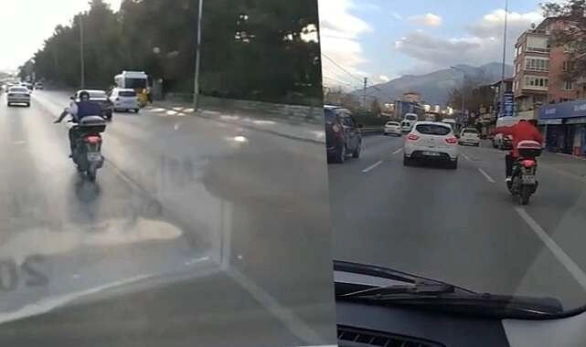 Bursa'da şehrin en işlek caddelerinden biri olan İzmir yolunda, motosikleti üzerinde seyreden bir vatandaş hızlanırken şekilden şekle girdi. İlk bakıldığında ne yaptığı anlaşılmayan sürücünün, daha sonra hareketlerinin jokeylerle aynı olduğu fark edildi.
