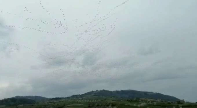 Yüz binlerce leyleğin aynı anda havada dans edercesine uçtuğu o anlar görüntülendi.