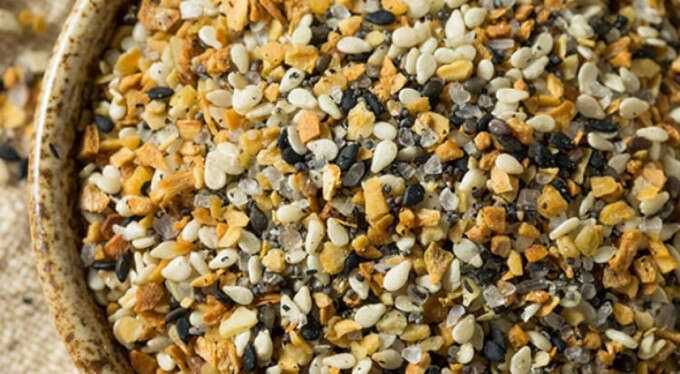 Tüm malzemeleri küçük bir kapta veya cam kavanozda birleştirin. Serin ve kuru bir yerde saklayın. Gerekirse, daha fazla tuzla tatlandırın. Bu mükemmel karışımı bagel yapımında ya da diğer hamur işlerinde kullanabilirsiniz.