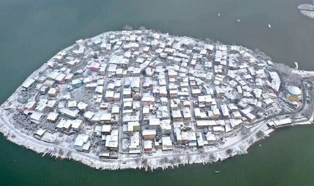 Türkiye'nin Venedik'i olarak bilinen Gölyazı, havadan karlı görüntüsüyle kartpostalları aratmadı. Bursa'nın Nilüfer ilçesinde, Uluabat Gölü kıyısındaki Gölyazı Mahallesi, her mevsimde kendisine hayran bırakmaya devam ediyor. Gölyazı, son iki gündür devam eden kar yağışı ile beyaza büründü. Yaklaşık 2 bin 600 yıl önce hayatın başladığı, nilüfer çiçeği ve balıkçı kadınlarıyla meşhur olan Gölyazı, karla kaplı görüntüsüyle büyük ilgi görüyor. Venedik'e benzetiliyor Özellikle kışın göl suyunun yükselip evlerin kapılarına kadar geldiği dönemdeki görüntüsüyle Venedik'e benzetilen şirin kasaba, Japon Seyahat Acentaları Birliği tarafından "Avrupa'nın en güzel 30 kasabası" arasında gösteriliyor. İhlas Haber Ajansı muhabirleri tarafından drone ile görüntülenen beyazlar içerisindeki Gölyazı, eşsiz güzelliği ile hayran bıraktı.