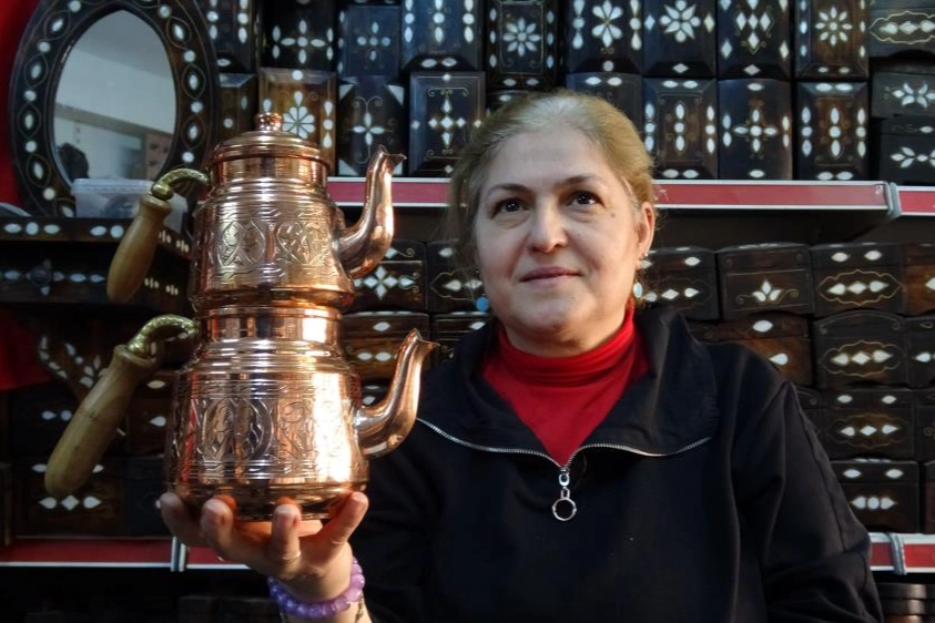 Gaziantep'te ev hanımı iken katıldığı kursta unutulmaya yüz tutmuş bakır işlemeciliği mesleğini öğrenen 54 yaşındaki Emine Sibel Bakırcı, maharetleriyle adeta erkeklere taş çıkartıyor.