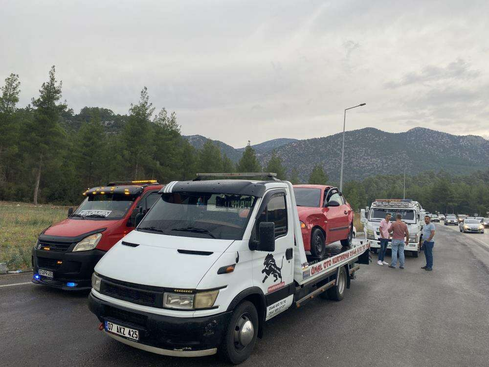 Çarpışmanın şiddetiyle Cafer Ş.'nin yönetimindeki otomobil ters döndü. Kazaya sürücüsü öğrenilemeyen 07 AEP 123 plakalı otomobil, Murat G. yönetiminde bulunan 07 YGK 08 ve Nuri Y. yönetiminde bulunan 71 AAF 011 plakalı otomobiller de karıştı. İhbarın ardından olay yerine polis, itfaiye ve sağlık ekipleri sevk edildi. İtfaiye ekiplerinin kontrolünde herhangi bir sıkışma meydana gelmediği öğrenildi.